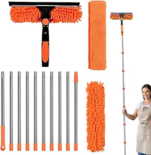Doyandader Perche Telescopique Nettoyage Toiture, Tete De Loup Telescopique, Kit De Dépoussiérage Haute Portée 6m avec Perche D'extension, pour Plafonds Étagères Abat Jour Fenêtres Et Ventilateurs