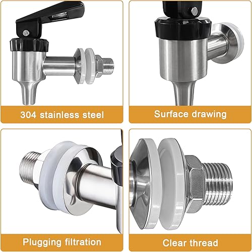 Lot de 2 distributeurs de boissons, en acier inoxydable, robinet de bière de 16 mm, distributeur d'eau, robinet de rechange pour distributeur de boisson, distributeur de boisson, en acier inoxydable