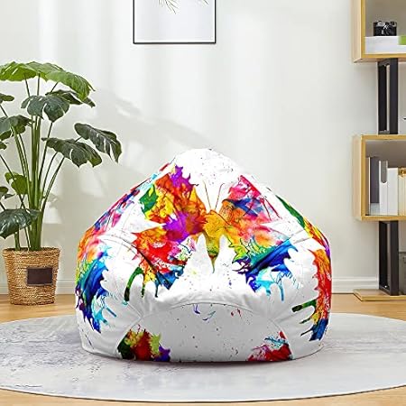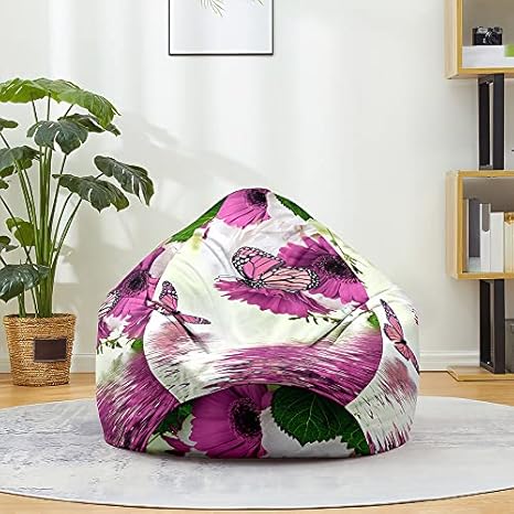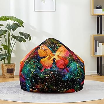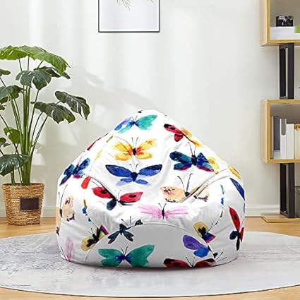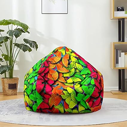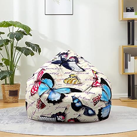 FANSU Pouf Poire sans Remplissage, Pouf pour Enfant Ado Adulte, Pouf Salon Chambre Soft, 3D Papillon Imprimer Sac Haricots, Polyvalent Pouf de Rangement (100x120cm,Papillon Rouge-Bleu)