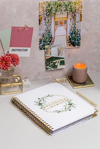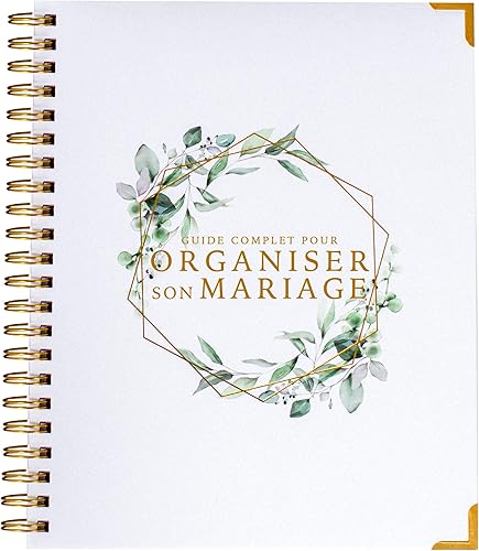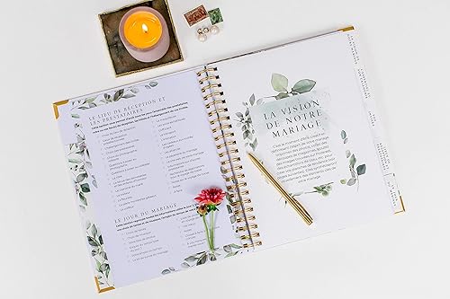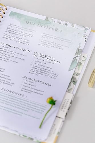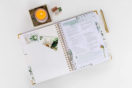 Organisateur De Mariage Français - Planificateur de mariage - Livre de planification de mariage élégant – Feuillage Vert et Doré - Version française
