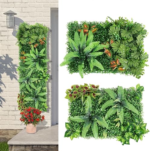 Lot de 2 Panneaux Muraux pour Plantes Artificielles 60 x 40 cm, Art Mural Artificiel en Soie Plantes,Faux Panneaux de Plantes avec Feuilles,Réaliste Plantes Décoration pour l'intérieur,l'extérieur