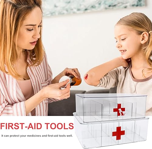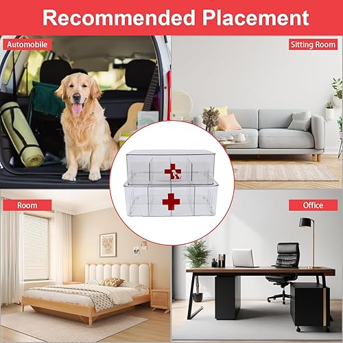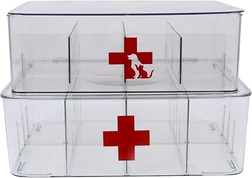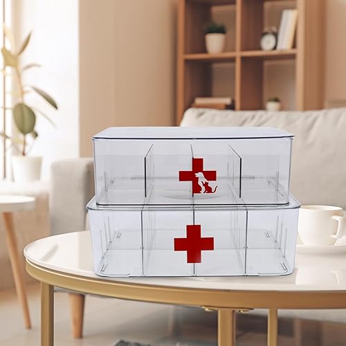 ZoeQide Boite Pharmacie,Pet Rangement Medicamen,Armoire Pharmacie en Acrylique,Trousse d'Organisation des Premiers Soins Divisée Avec Couvercle à Charnière,Pour Rangement de Médicaments, Transparent