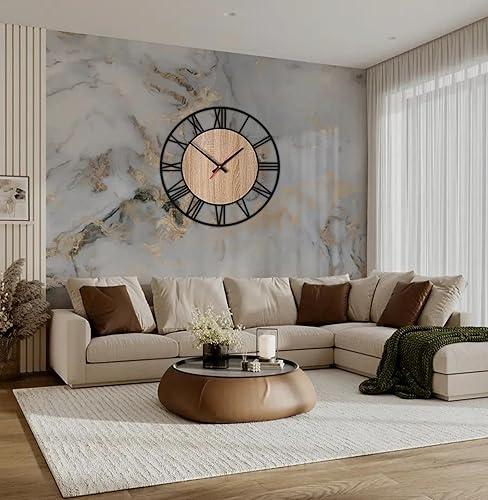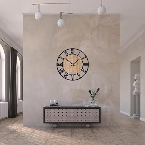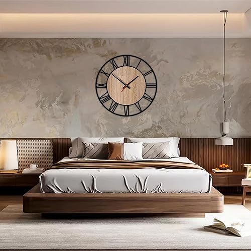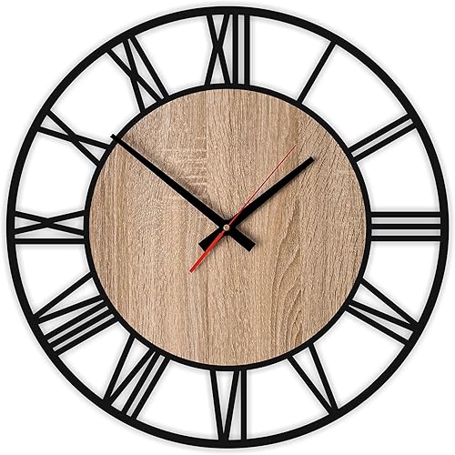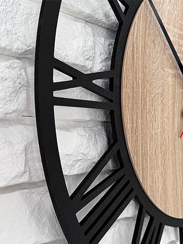 ELVIS Horloge murale en bois de 50 cm en chêne sonoma cadran en bois noir mouvement à quartz silencieux rétro style loft