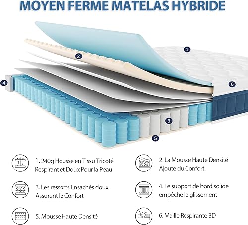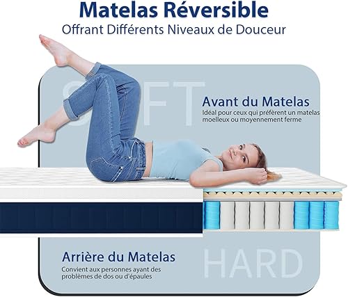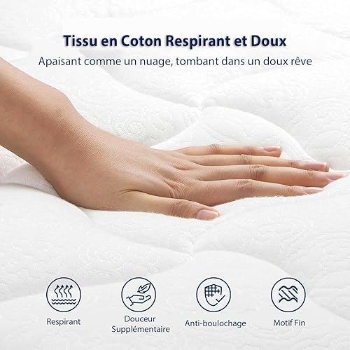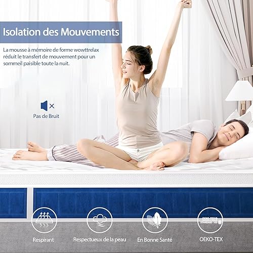 wowttrelax Matelas 90x190cm, Épaisseur 25cm, Matelas à Ressorts Ensachés Indépendants à Fort Soutien, Mousse à Mémoire de Forme Haute Résilience, Tissu Doux Respirant, 8 Zones de Confort