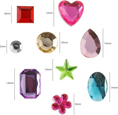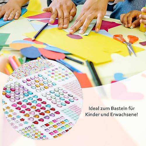 CraftWerk Lot de 1 782 pierres à paillettes autocollantes - Strass colorés pour projets créatifs, scrapbooking, bricolage - Accessoires de bricolage dans différentes formes et tailles