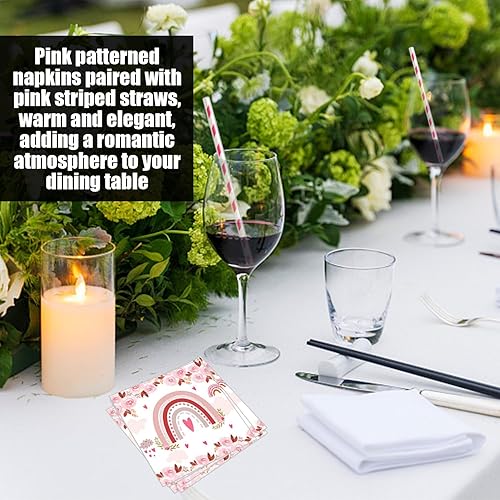 40 Fleurs De Serviette, 10 Pailles Rayées, Serviettes De Décoration De Table De Baptême, Accessoires De Serviettes De Décoration De Fête, Serviettes Décoratives Roses