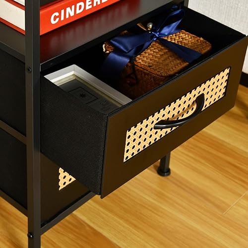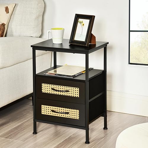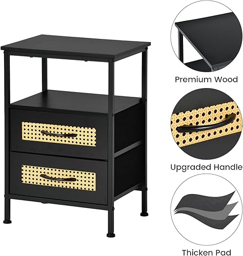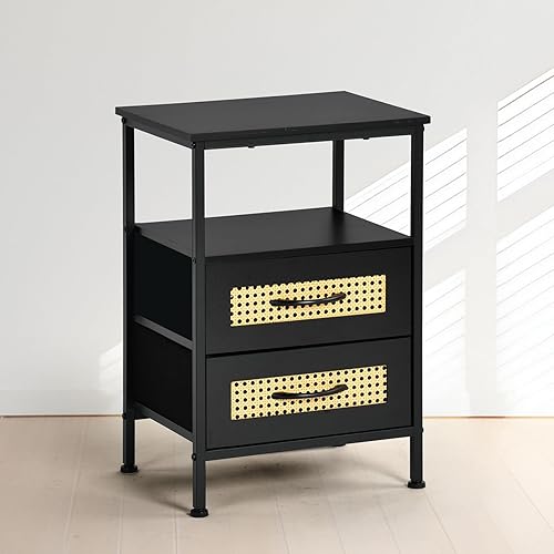 FetiNes Table de Nuit, Table de Chevet avec Espace de Rangement, 2 tiroirs Amovibles, Armoire de Nuit pour la Chambre à Coucher, Le Salon, 40 x 30 x 60 cm, Noir