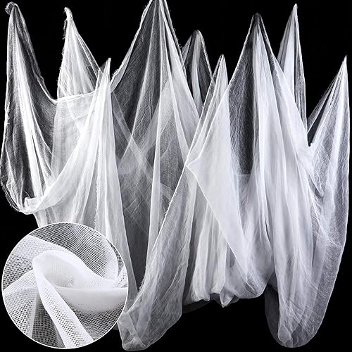 Boao Décorations d'halloween Tissu Effrayant d'halloween, Étamine Fantasmagorique en Mousseline de Coton pour Fête d'halloween Intérieur Extérieur Portes Maisons (Blanc, 85 x 197 Pouces)