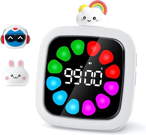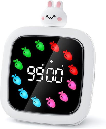 Yunbaoit Minuteur Visuel, Compte à Rebours Silencieux Rechargeable de 99 Minutes, 9 Options D'affichage en Couleur, Outil de Gestion du Temps pour Les Enfants et Les Adultes (Lapin)