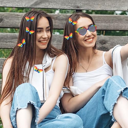 Moerstar Ensemble de Pinces à Cheveux Papillon Arc-En-Ciel, Lgbt Gay Pride Accessoires avec Pince à Cheveux Lunettes Crayon de Maquillage Arc-En-Ciel, pour Fêtes Festivals