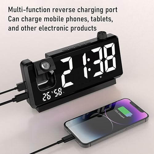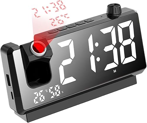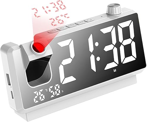 Yonuaret Réveil À Projection Plafond Heure, Horloge Numérique Reveil Projecteur Plafond LED Reveil Projecteur 180°,Double Alarme, Snooze, Charge USB pour La Maison, Le Bureau