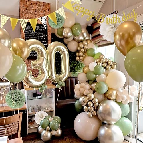 Vert Sauge et or Decoration Anniversaire 62 PièCes, Kit Guirlande D’Arche de Ballon Vert, Paillettes, Ballons, Boules de Papier BannièRe de Joyeux Anniversaire Articles de FêTe Vert