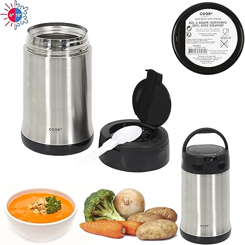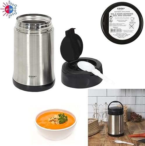 Bol à Soupe Isotherme avec Couvert Inox 50cl Cuisine à Emporter Lunch Box et Accessoire