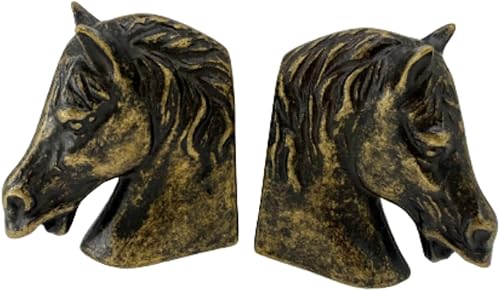 Paire serre-livres en laiton bruni en forme de tête de cheval artisanat Made in Italy