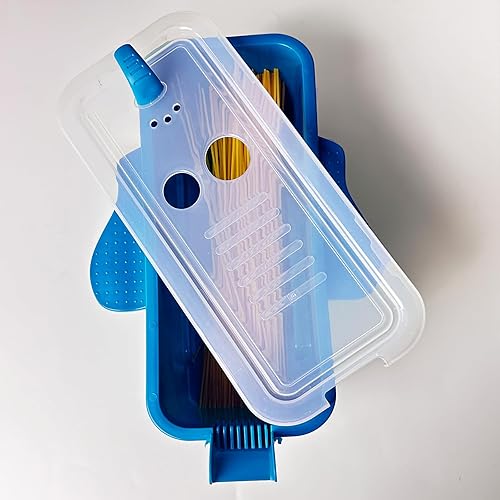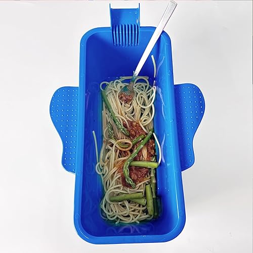 Récipient à pâtes pour micro-ondes de 1,927,8 g avec passoire, cuit rapidement jusqu'à 4 portions de pâtes, cuiseur multifonction pour dortoirs, cuisines ou bureaux (bleu)