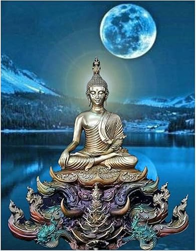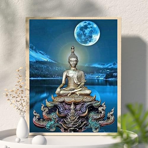 Diamond Painting Carré 40x50 cm Bouddha Perle Diamant DIY 5D Peinture Diamant Adulte Strass Carré Stickers Broderie Diamant Grand Format Point de Croix Autocollants Diamond Painting Paysage Lune