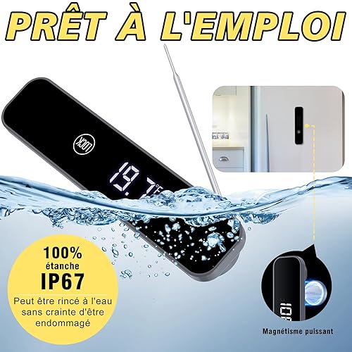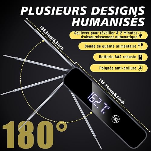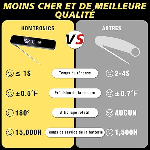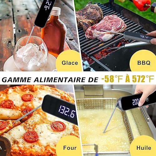 Thermometre Cuisine,[1s Lectures+Affichage Mumérique] Homtronics Thermomètre Cuisine Sonde Rechargeable,Thermometre de Cuisson Viande Rétroéclairage LCD pour Cuisson, Viande, BBQ, Steak, Huile, Lait