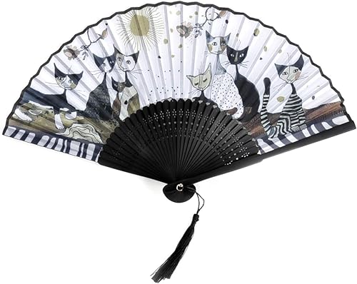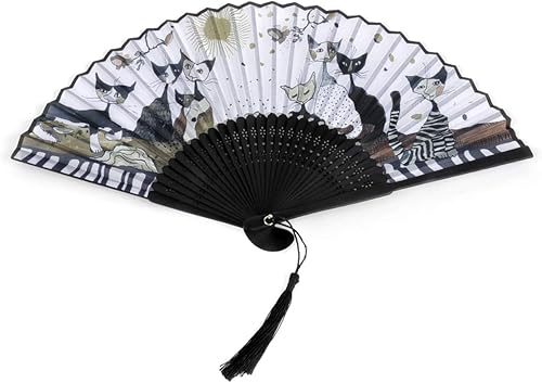 Éventail Rosina Wachtmeister - Famille de Chats Or, Noir et Blanc
