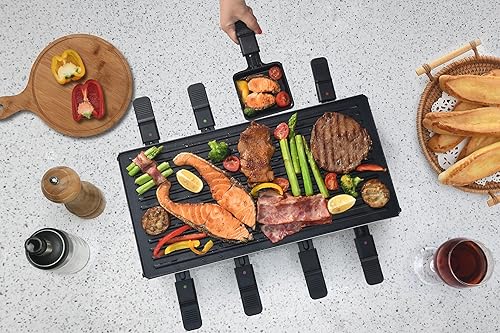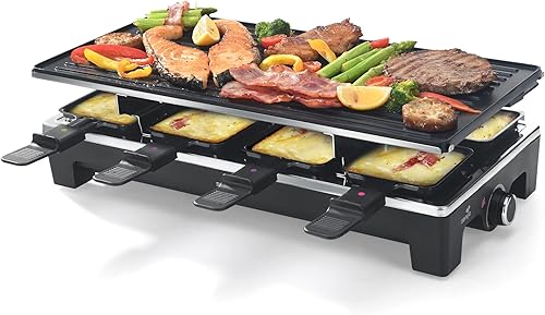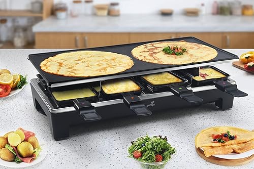 SENYA Appareil 3en1 Raclette, Grill, Crêpe, 8 personnes, Revêtement antiadhésif, 1500W, Sweet Cheese, SYCK-G091, Noir