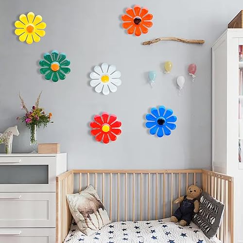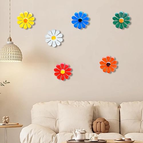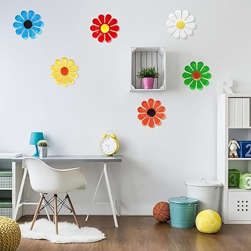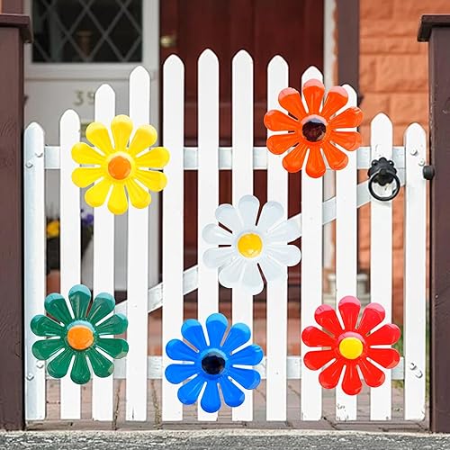 KASESSS 6 Pièces Fleur Décoration Murale en Métal, Decoration Jardin Exterieur, Décoration Murale Extérieure, Décoration de Clôture de Jardin à Suspendre pour Cour Clôture Salon Chambre, Coloré