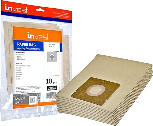 Invest - Lot de 5 sacs filtrants de rechange compatibles avec Rowenta RO 1700-1799 Compacteo, RO 1855, RO 5227, RO 524321, RO 5253OA, ZR 0039, ZR 0041 - Marron