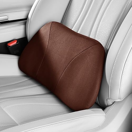 POKSRI Coussin Lombaire Auto en Simili-Daim Premium, Mousse à mémoire de Forme 5D, Tissu Respirant, pour siège conducteur (Ivoire)