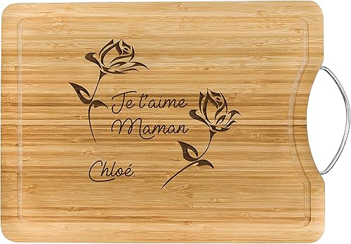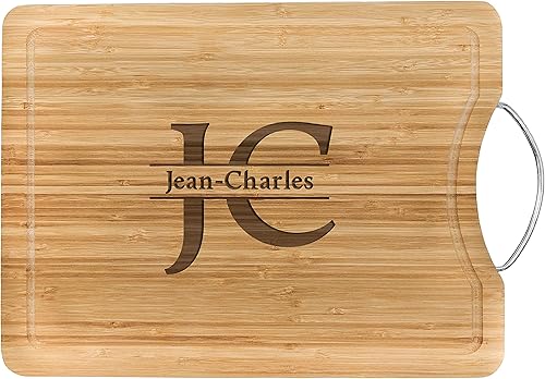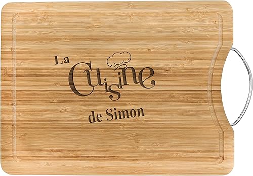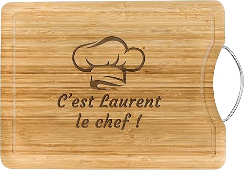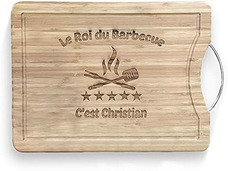 KDO MAGIC - Planche à découper personnalisée - Plateau gravé avec un prénom - Matière bambou - Poignet en acier - cadeau papa (Barbecue)