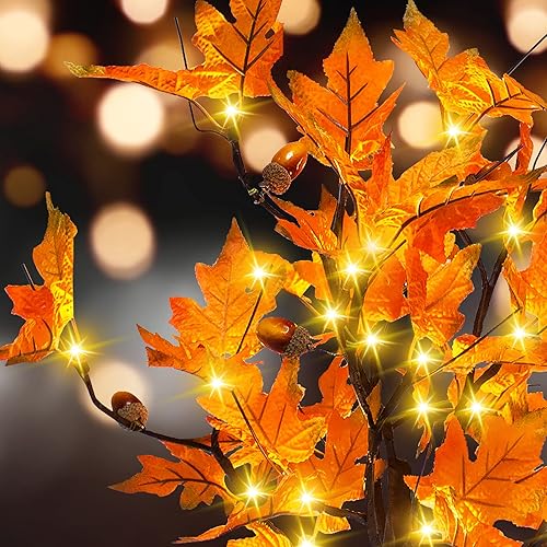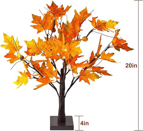 Érable Lumineux d'automne de 61 cm avec Glands, 24 lumières LED, Fonctionne à Piles, décoration de Table de Thanksgiving, Arbre Artificiel pour la Maison, Le Bureau, la cheminée, la récolte d'automne
