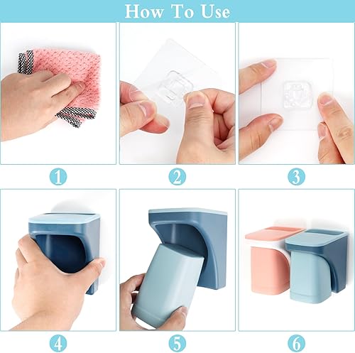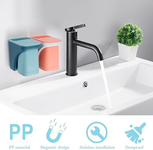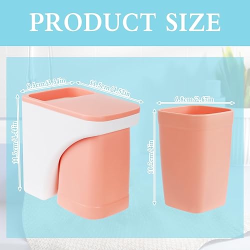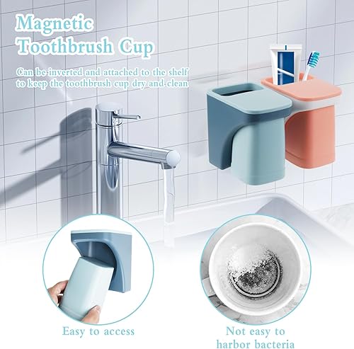 Porte-gobelet à Dents sans Percer 2 Pièces Porte-Brosse à Dents avec Gobelet Magnétique, Bleu et Rose Gobelet à Dents en Plastique Support Brosse a Dent pour Salle de Bain et Famille