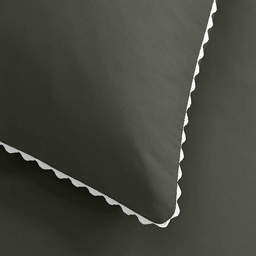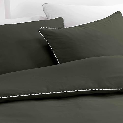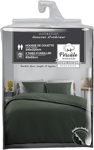Douceur d'Intérieur, Parure 3 Pièces (240 x 220 cm) Loumea Kaki/Blanc, Percale de Coton