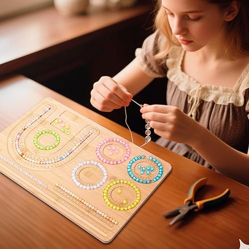 Planche De Perles en Bois, Robuste Planche de Conception de Bijoux Modèle de Fabrication Bead Boards for Jewelry pour la Conception de Bricolage Bracelet en Perles Collier Bijoux