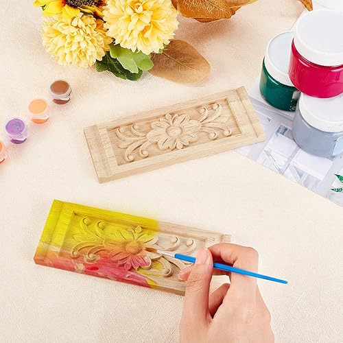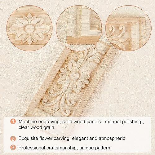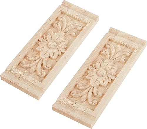 SUPERFINDINGS 2 pièces Bois Sculpté Applique Cadre Onlay Meubles Non Peints Décoration Rectangle Motif pour la Maison Porte Armoire Décoration 160x60x9.5mm