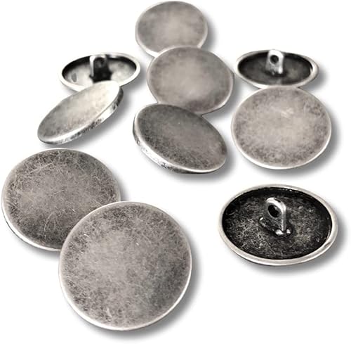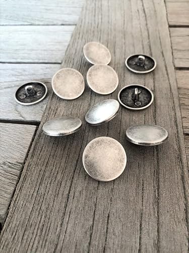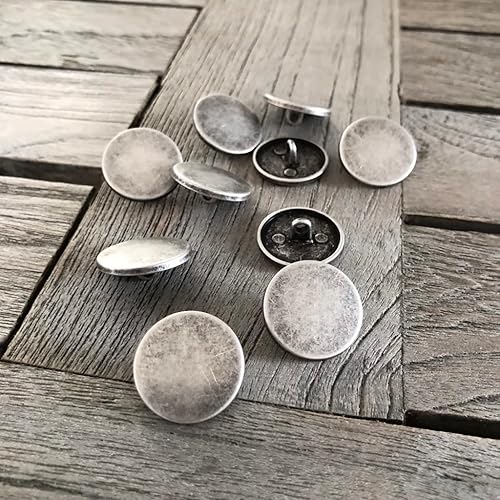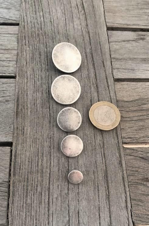 Lot de 10 boutons à œillets plats en métal argenté mat 10 mm, 15 mm, 18 mm, 20 mm, 22 mm ou 25 mm (15 mm)