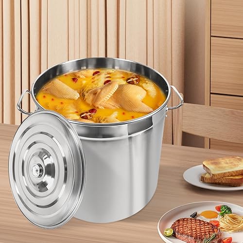 Tagtuell Marmite à légumes compatible induction 40 cm, couvercle en métal, grande casserole de 50 l, acier inoxydable mat, passe au lave-vaisselle, argenté