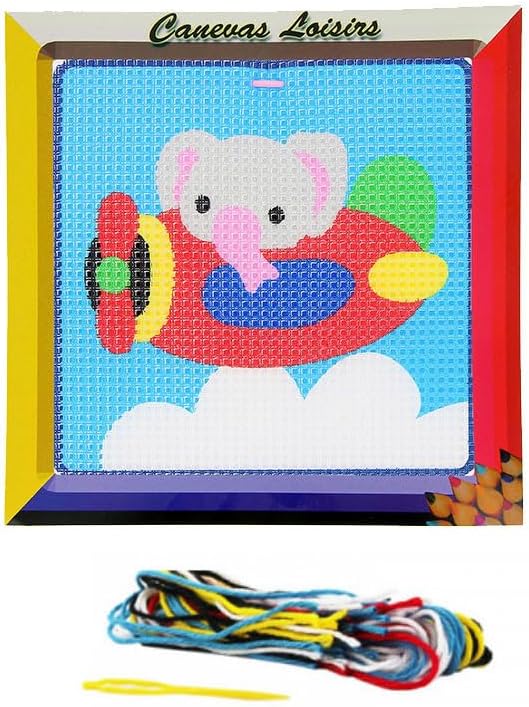 Distrifil Kit Canevas Petit Eléphant en Avion 16 x 16 cm Gros Trous