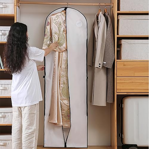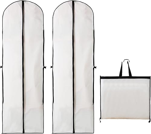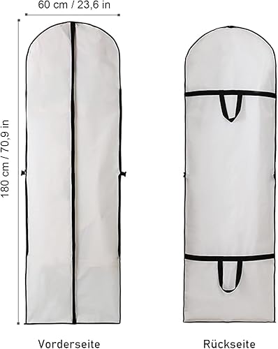 2 Pièces Housse de Robe de Mariée 60 x 180 cm, Housses de Vêtements Imperméable, sac à Vêtements Costume Long Avec Fermeture éclair, Pour Costumes Robes
