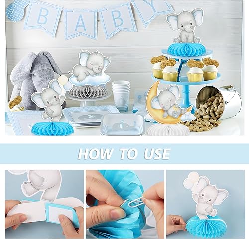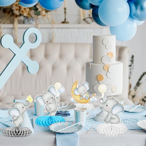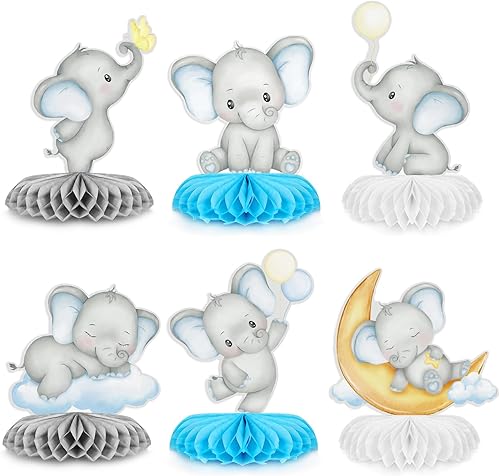 BETESSIN Lot de 6 Centres de Table en Nid d'Abeille Motif Éléphant Mignon Décoration Table Baptême Fête de Naissance Anniversaire Baby Shower Garçons