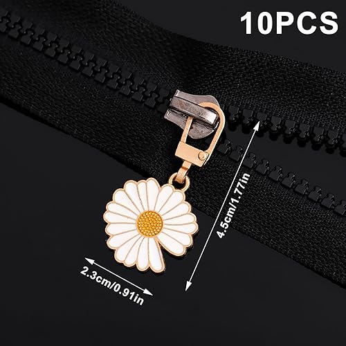 pekifaves 10 Pièces Marguerite Tirette Fermeture Eclair Remplacement, Daisy Reparation Curseur Fermeture Eclair, Universel Languette De Réparation Pour Zipper, pour Vestes, Manteaux, Valises, Jeans