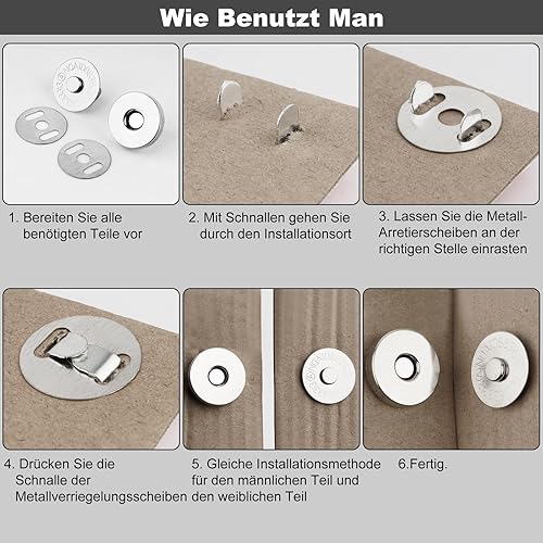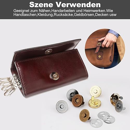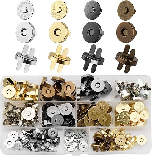 REJOECE 60 Paires Fermoir Magnétique, 14mm Bouton Pression Aimanté, Circulaire Pression Boutons pour Sac en Tissu, Portefeuille en Cuir, Craft DIY