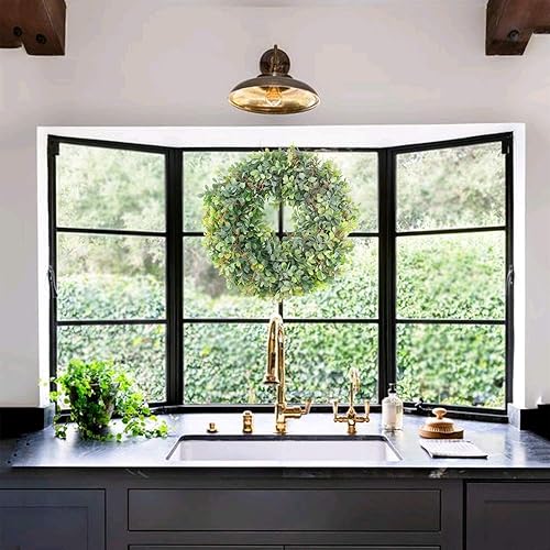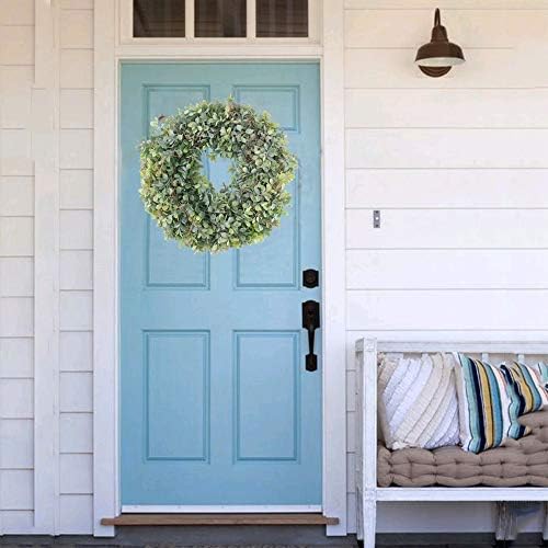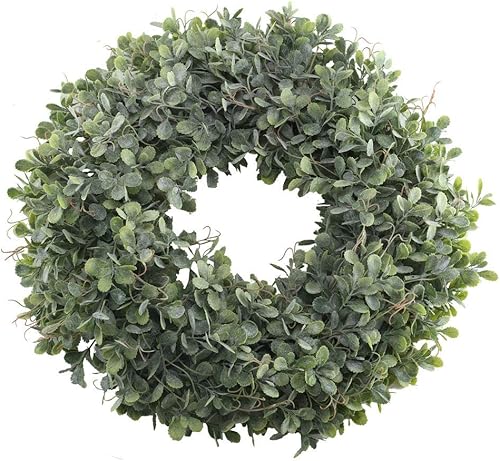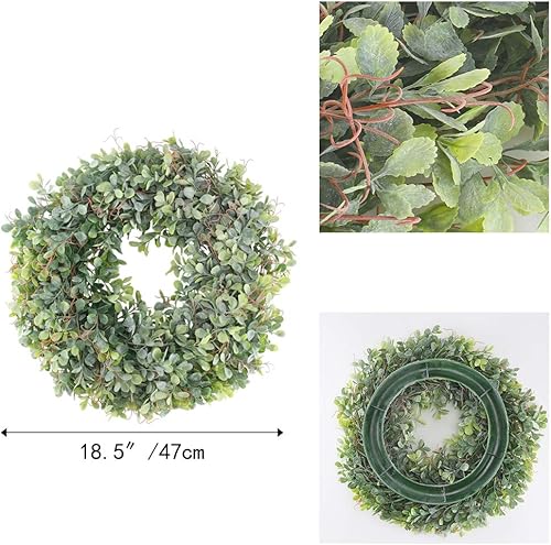 HUAESIN Couronne de Artificielle Feuilles Vertes Couronne de Porte Avant Guirlande de Buis Artificielle Feuillage pour Porte Fenêtre Mur Noël Décoration Ø 47 cm