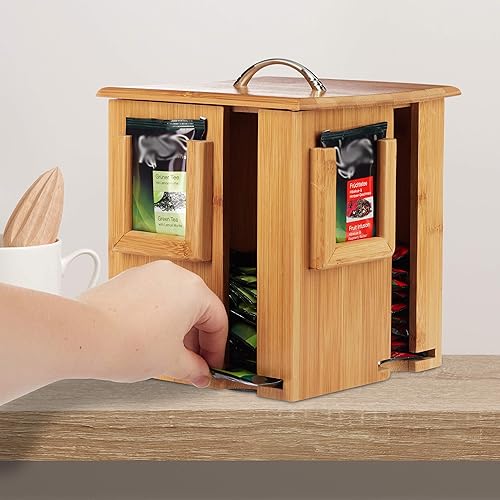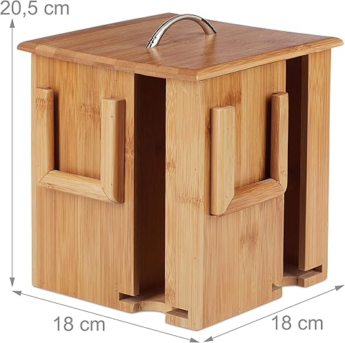 Relaxdays Boite à thé bambou 4 compartiments distributeur présentoir rotatif 160 sachets HxlxP 20,5 x 18 x 18 cm, nature