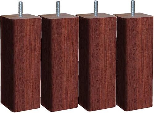 MARGOT 3700527844459 Douceur Scandinave Carré Lot de 4 Pieds de lit Bois Acajou Hauteur 17 cm