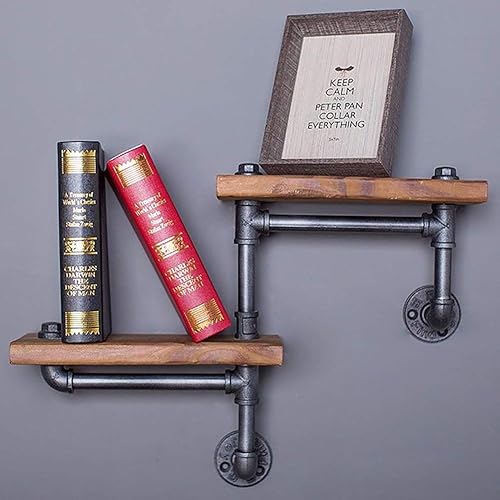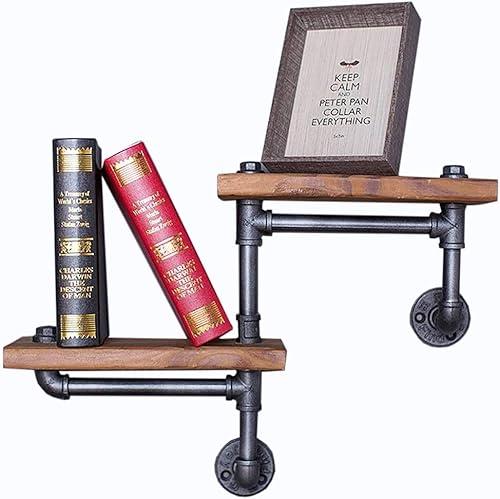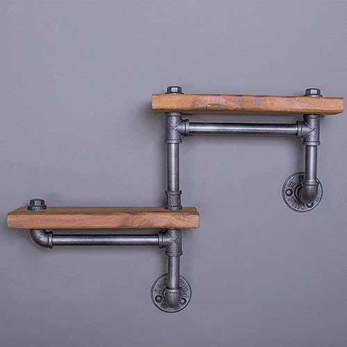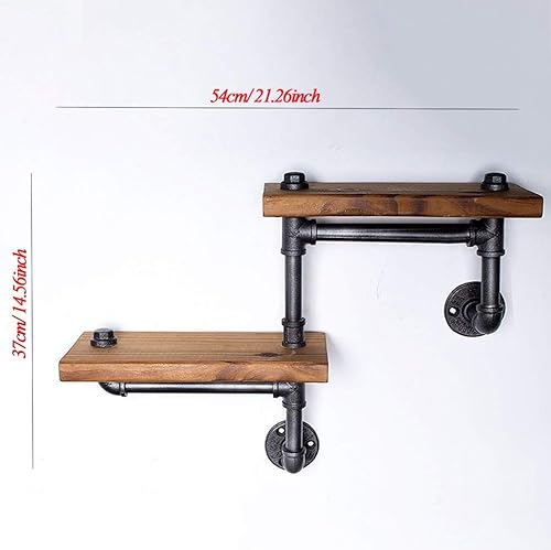 Pipe Métal Bois Étagère Murale, 21 Pouces Étagères Tuyauterie Industrielle, 2 Étagères Hiérarchisé Diapason Porte-Serviettes Étagères, Ferme, Salle d'eau, Salle De Bains