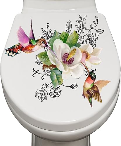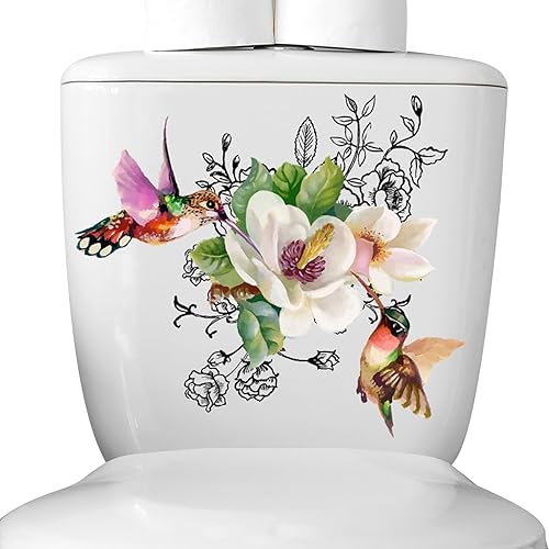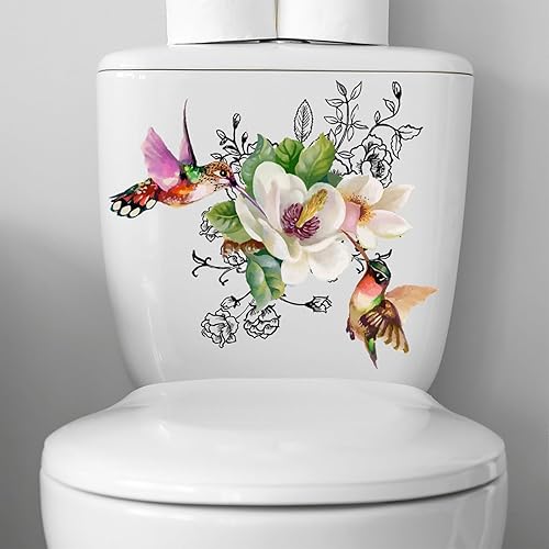 PEPWE Autocollant WC Oiseaux et Fleurs Salle de Bain Abattant WC Stickers Muraux - PVC - Multicolore - 30 x 30 cm - 1 unité