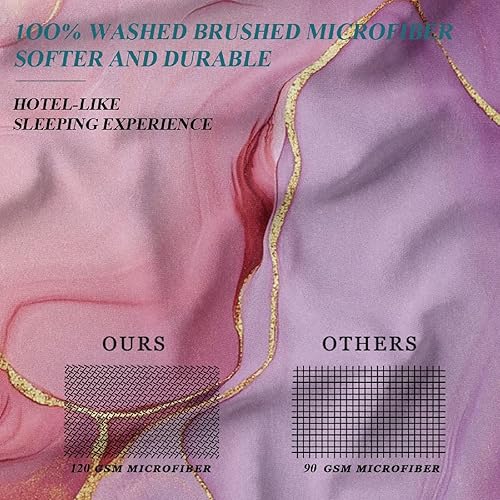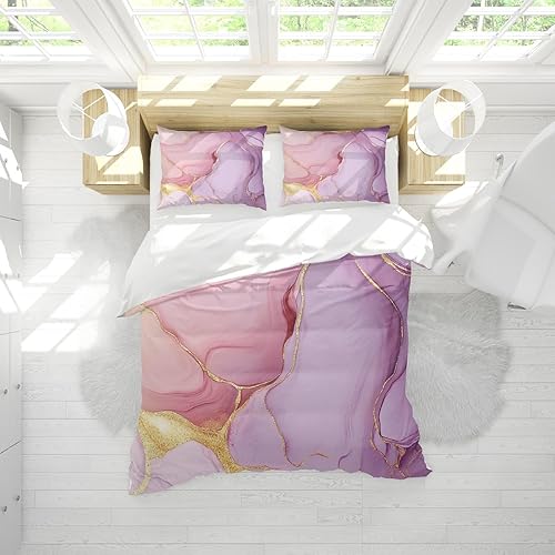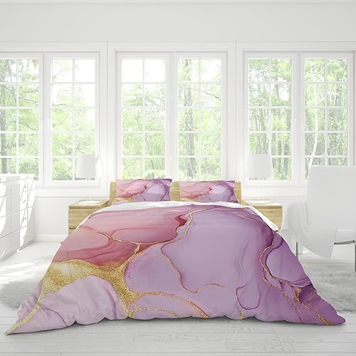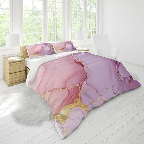 Housse de Couette pour Ado Adulte 140x200cm Art Fluide Doré Parure de Lit 3 Pièces avec 2 Taie d'oreiller 65X65cm, Rose Parure De Lit 2 Personnes en Microfibre avec Fermeture Éclair