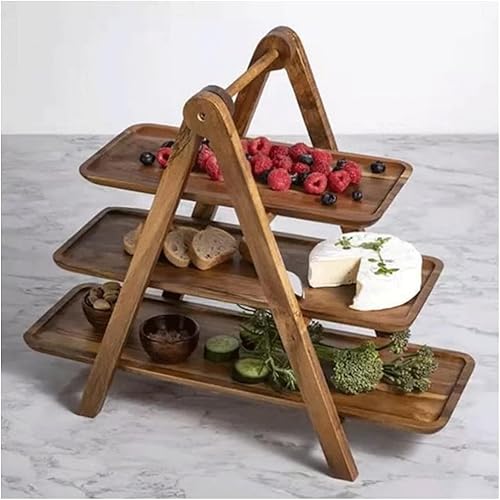 laimei Plateau de Service à 3 Niveaux, Plateau à Plusieurs Niveaux en Bois, DéCor Support à Gâteaux, Plateau à Plusieurs Niveaux de Ferme, Plats et Plateaux de Service de FêTe