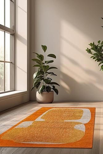 BENEFFITO Tapis - Collection Poum Poum Orange Cocktail - Tapis d'intérieur Moderne et Doux - Rectangulaire - 140 x 200 cm