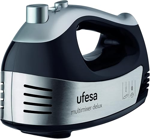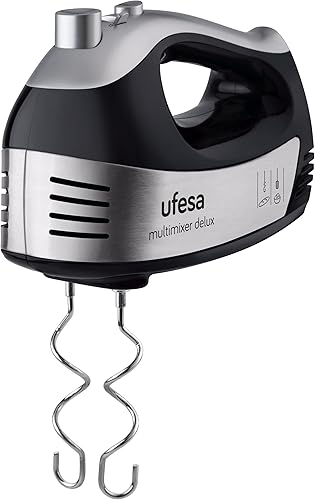 Ufesa BV5655 Multimixer Gyro Delux Batteur Électrique Plus Bol Rotatif, 500W, 5 Vitesses Plus Turbo, 2 Fouets Hélice, 2 Crochets Pétrin, Inox
