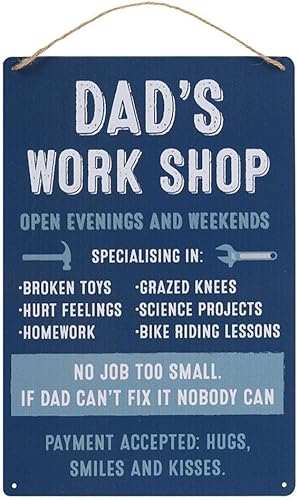 Dad's Work Shop Panneau en métal Inscription No Job Too Small If Dad Can't Fix It Nobody Can Vintage Decor Sign Garage Garden Yard Sticker mural 30,5 x 40,6 cm (15T41)