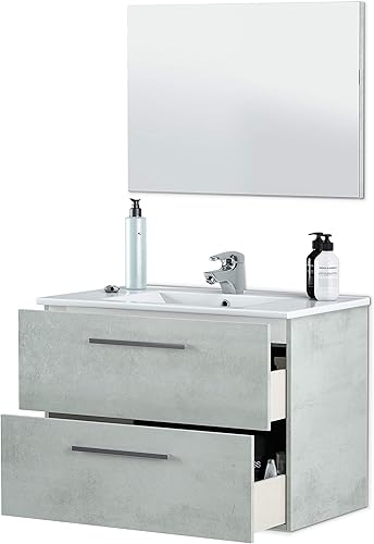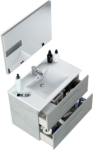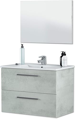 ARKITMOBEL - Colonne de Salle de Bain à Suspendre - Finition Ciment Mélaminé - 2 Portes, Fermeture Progressive, Étagères Modulables - Poignées Chromées - Fabrication Européenne - 30 cm